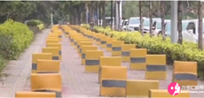 東莞市某院校附近的人行道擺滿了石墩